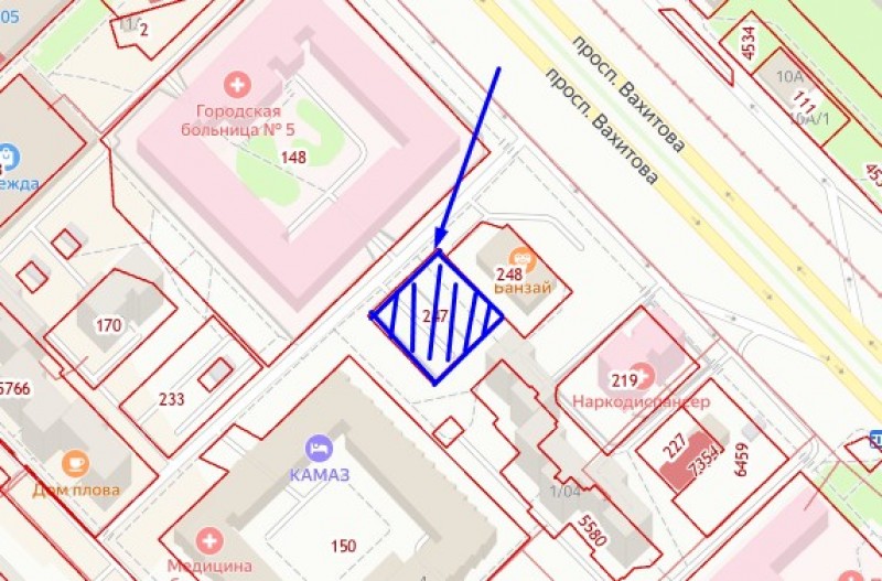 земельный участок в собственности в центре города, рядом с 1/09, целевое назначение участка: под многоквартирные жилые дома с использованием 1-х этажей под объекты общественного питания, торговли, бытового обслуживания, связи, детские сады, аптеки, банки. кадастровый номер 16:52:070101:247