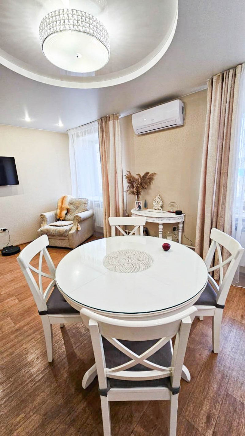 В продаже элегантная трехкомнатная квартира в стиле \\\\\\\"нео классика\\\\\\\" в спокойной части города п.Зяб, дом 14/05. Кирпичный дом 2003г. постройки расположен вдали от городской суеты. В шаговой доступности школы, д.сады, магазины крупных торговых сетей, поликлиники и мед.центры. В самой квартире выполнен качественный ремонт в нео классическом стиле. Комфортная планировка в современном европейском формате с объединением зоны гостиной и зоны кухни позволяет собираться всей семье за столом для дружного чаепития. Цветной витраж выполнен в стене между гостиной и прихожей, что придаёт воздушности пространству и шарма интерьеру. Ремонт в санузле выполнен в кафеле, установлен бойлер- отключение горячей воды теперь не будет Вас волновать! Новым хозяевам останется стильный кухонный гарнитур из массива с патиной, кондиционер и спальный гарнитур в спальне. Записывайтесь на просмотр, квартира ждёт своих новых хозяев!